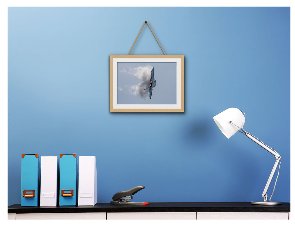 The incredible F-22 Raptor is captured in this beautiful image. The photograph is printed on high quality archival paper, as a print only. It's available in three sizes, 8" x 12", 12" x 18" and 16" x 24".
